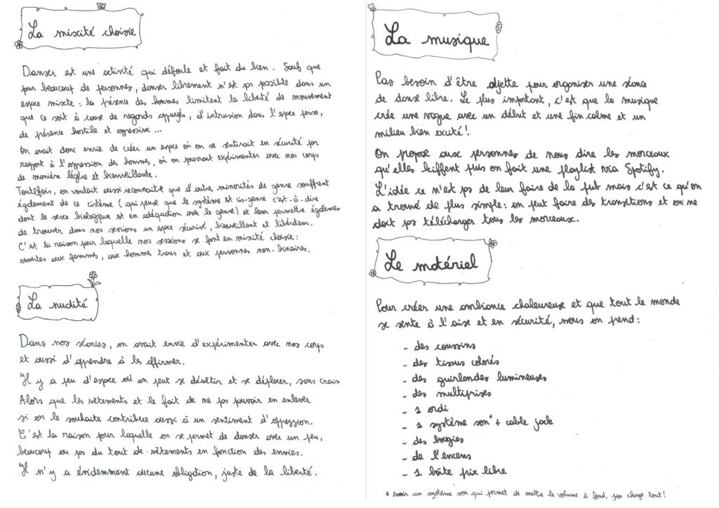 Les boums de danse libre ont un cadre et un déroulé plus fixe que dans mon enfance pour permettre à toutes les personnes de bien s’y sentir. Pour moi, la danse libre a été un outil formidable de reconnexion à mon corps, de réappropriation de mon esthétique du mouvement et de créations de liens forts. Parce qu’à la base des boums, quand on a commencé en septembre 2019 avec Léa et Gwen, on les a pensé comme des espaces en mixité choisie. Parce que pour réapprendre à bouger, à sentir nos corps, on avait besoin de sécurité et de bienveillance. Et c’est que nous permettait la mixité choisie.