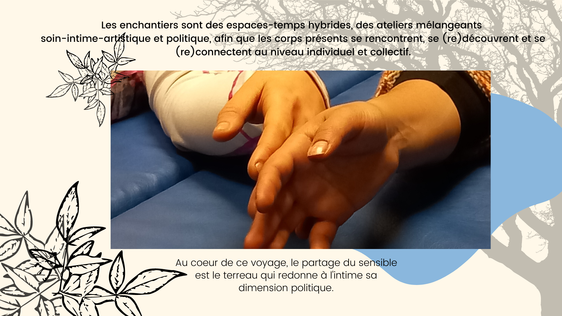 Lorsque je rencontre Jess, on se rend compte rapidement qu’on partage les mêmes opinions sur le soin et les pratiques artistiques: ça devrait être accessible au plus grand nombre. L’art permet de soigner des blessures profondes et ça manque d’espace pour panser ses plaies en collectivité.